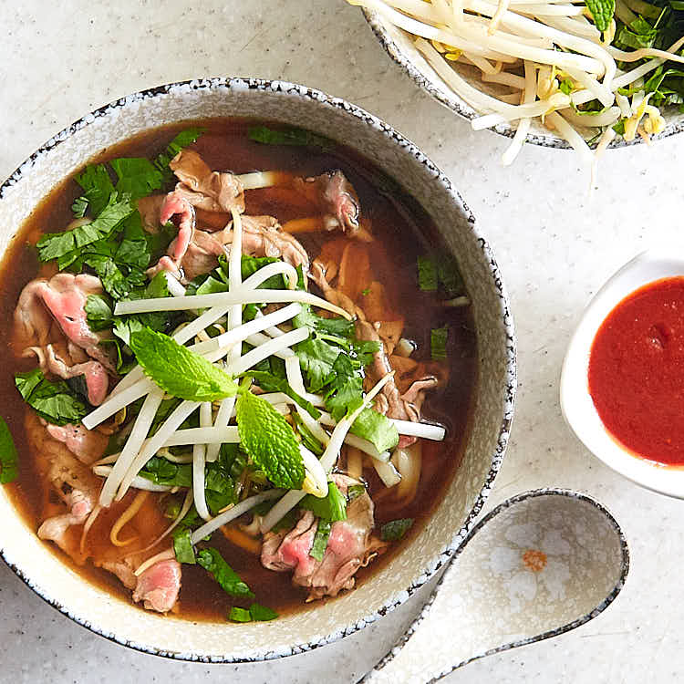 Fragrant vietnamese bone broth, rice noodles and herbs. Perfect bowl of Pho